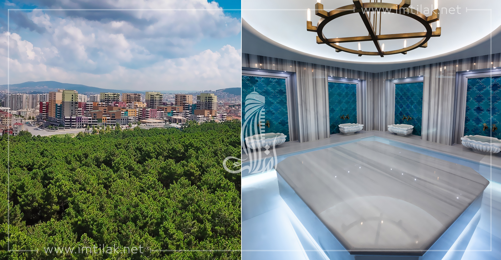- يقع المشروع في القسم الآسيوي من إسطنبول في منطقة سانجاك تبه بعيداً عن صخب المدينة، حيث يتميز بإطلالته على غابات آيدوس الرائعة والتي تضم قلعة آيدوز الأثرية، مما يوفر الهواء النقي لساكني المشروع، بالإضافة لبحيرة رائعة ضمن الغابة.
