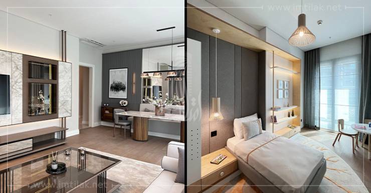 - تتميز شقق المشروع بمساحاتها الفسيحة، وشرفاتها الواسعة، وإطلالاتها الخلابة، وتتنوع على أنماط عدة من 1+1 إلى 3+1، مع وجود خيار الدوبلكس للشقق من النمط 3+1.