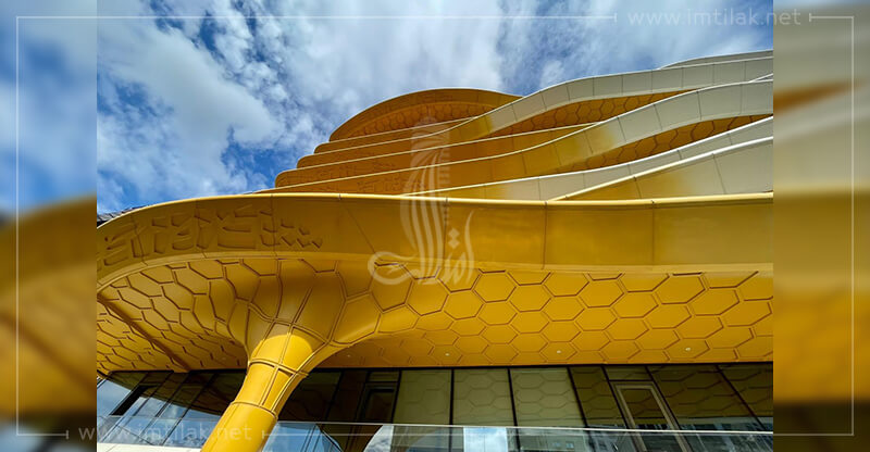 - يميز المشروع شكل بنائه الخارجي الأنيق وتصميمه الانسيابي المتموج المستوحى من خلايا النحل، بالإضافة لجودة تشطيباته وتنوع تقسيماته وتوزيع غرفه، وامتداد نوافذه الزجاجية من أعلى السقف إلى الأرض لتوفير الإضاءة والإطلالات الواسعة.