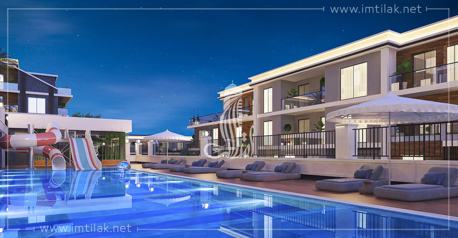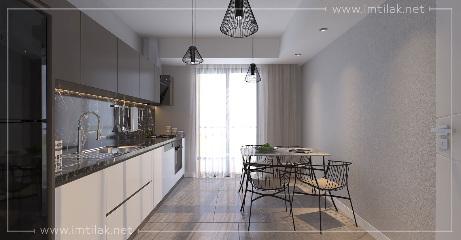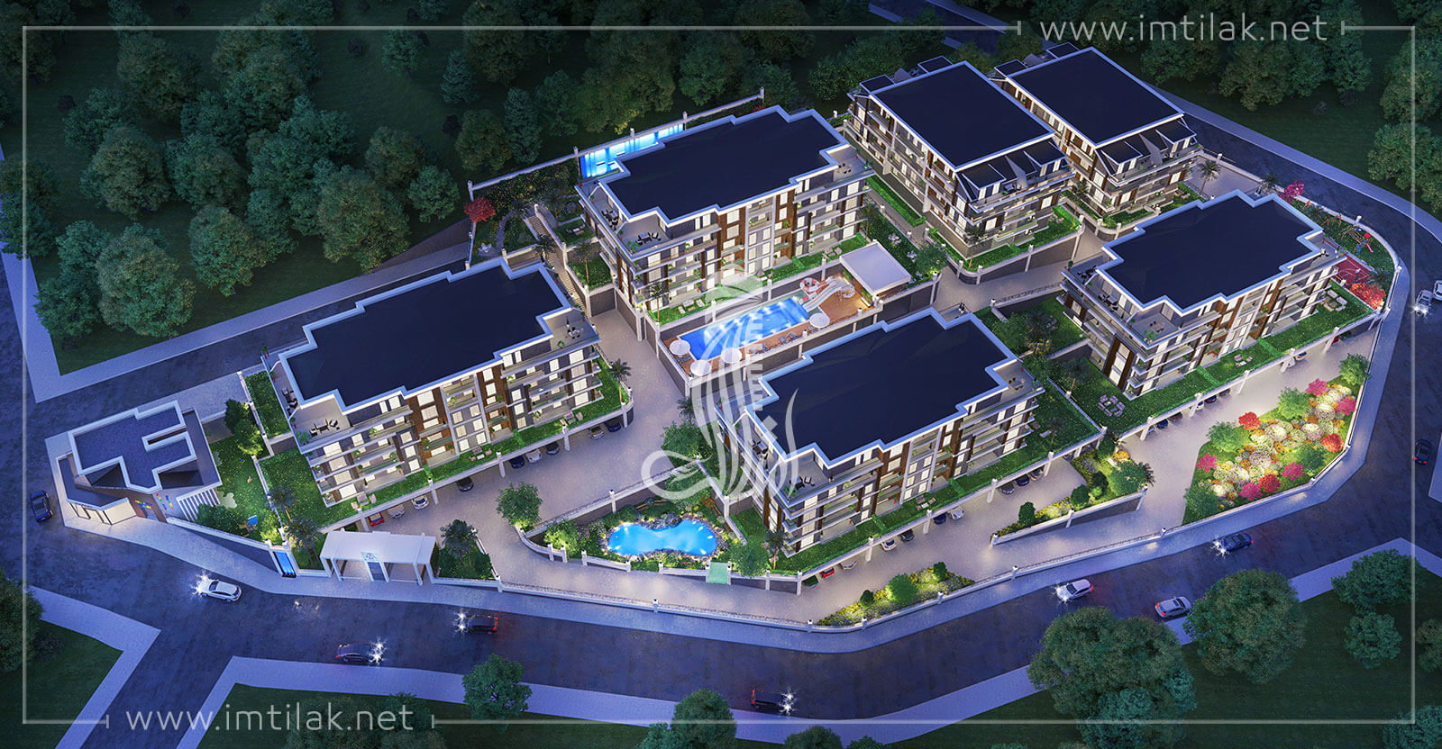 - It offers luxury apartments of different styles, ranging from 1+1 to 4+1, in addition to duplexes with terraces on the upper floors.