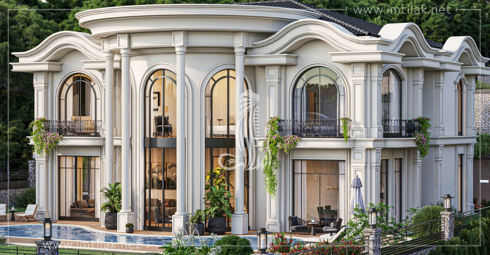- The villas have a splendid architectural design, designed in the style of luxurious palaces, with their rooms, halls, corridors, staircases, and high ceilings.