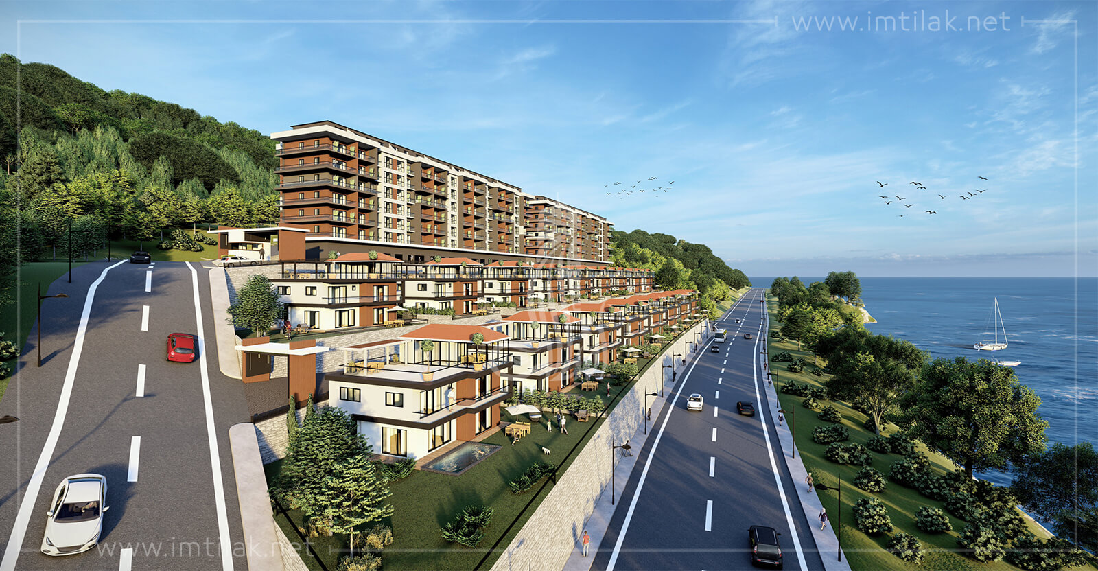 - A residential complex containing apartments and villas in Kalecik, which is known among the most beautiful and charming nature areas in Trabzon, away from the hustle and bustle of the city, with a distinctive view of the Black Sea and a few meters away from it.