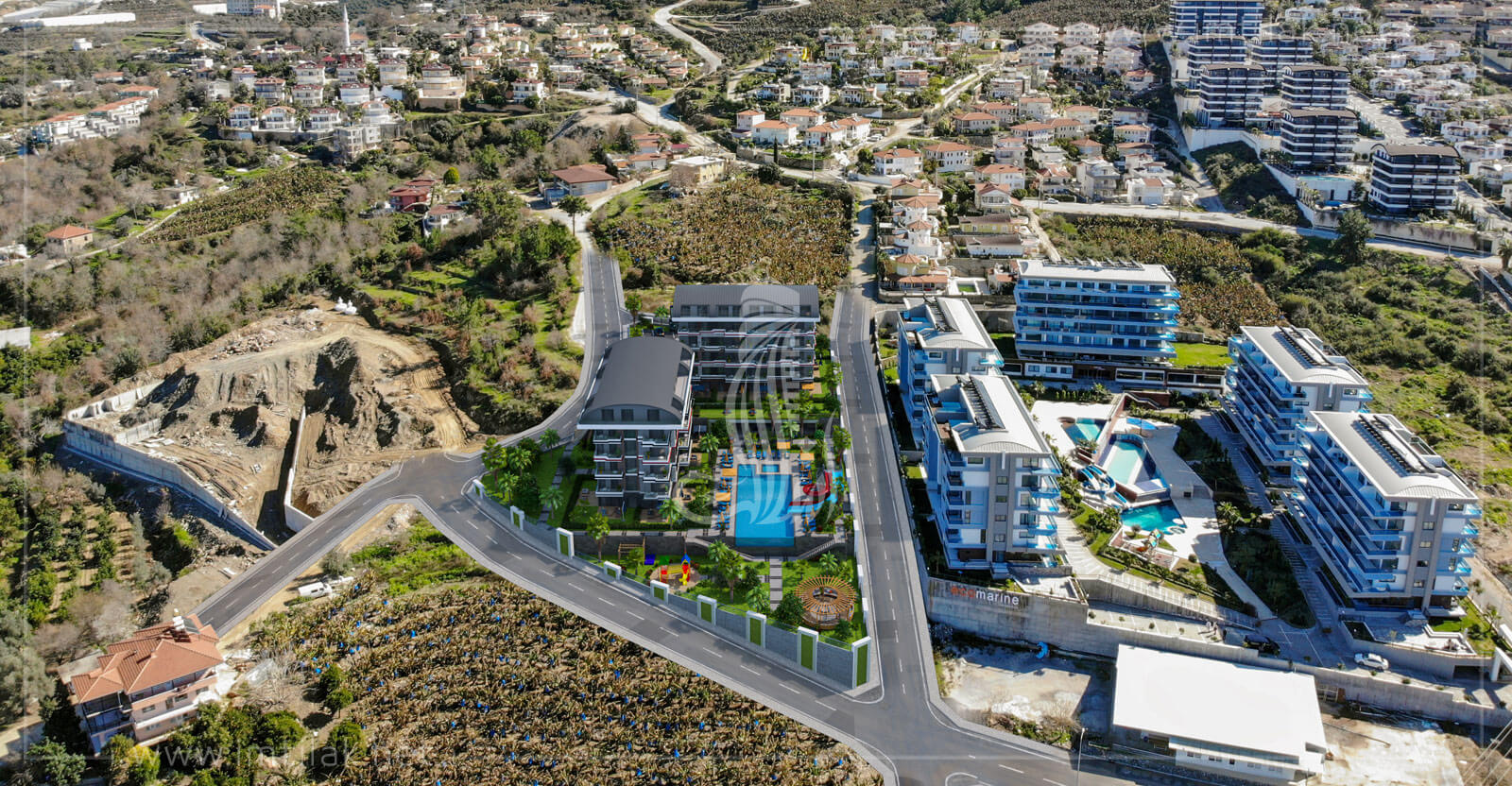 • این پروژه در منطقه کارگیجاک شهر آلانیا واقع شده است. آلانیا یکی از توابع آنتالیا بوده که دارای مراکز توریستی و گردشگری فرآوانی است با سواحلی شنی و طبیعتی دلربا و شور انگیز.
