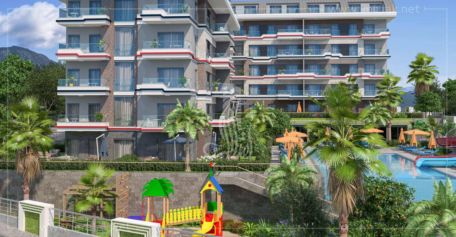 • مزیت منحصر به فرد این پروژه علاوه بر نزدیکی به مرکز شهر، قرار گرفتن آن در ساحل آلانیا در دریای مدیترانه است.