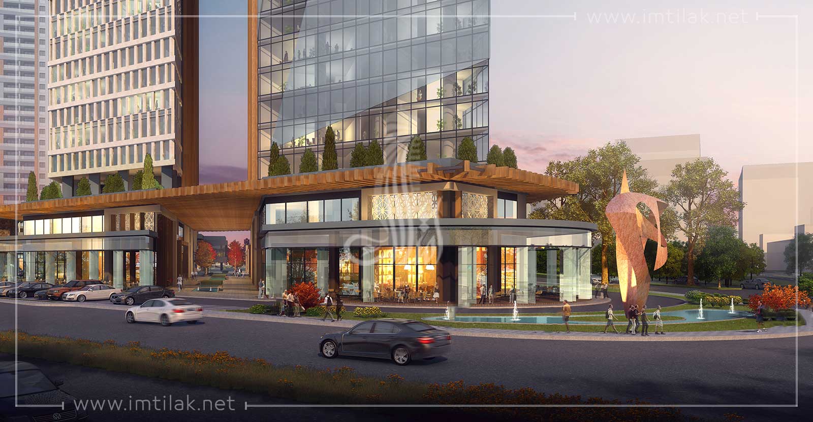- یک میدان تجاری ، مشرف به خیابان به طور مستقیم در زیر ساختمان های اداری در محله یامان اولر واقع شده است.