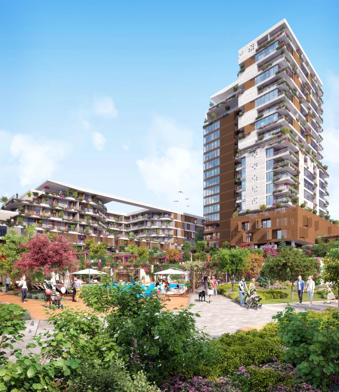پروژه محیطی مسکونی آرام و مجلل را فراهم میکند، به لطف طراحی مهندسی سبز و فضاهای وسیع اختصاص داده شده به باغها و گذرگاهها، که زندگی روزمره مدرن و آرامش خانوادگی راحت را ترکیب میکند.