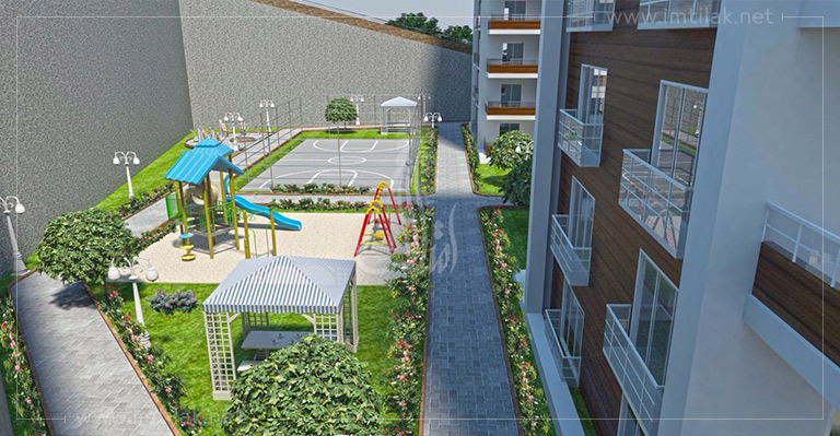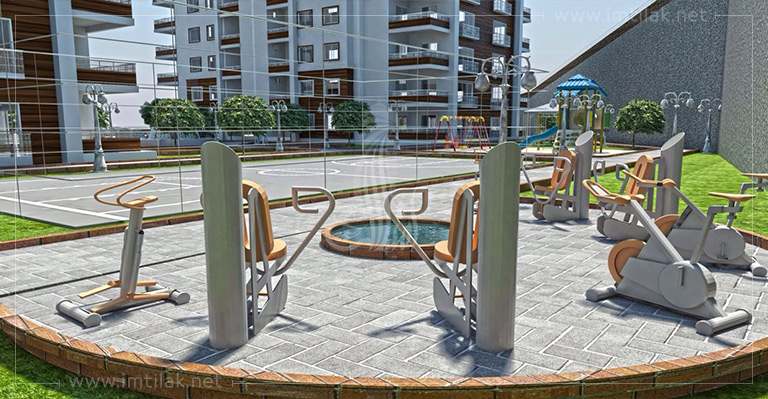 - یک آپارتمان با دو چشم انداز ، پارکینگ سرپوشیده ، بازی های کودکان ، فوتبال و زمین تنیس و بسکتبال.