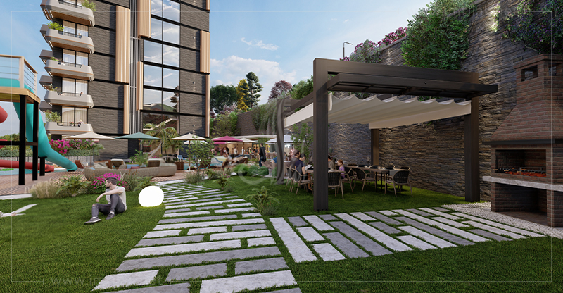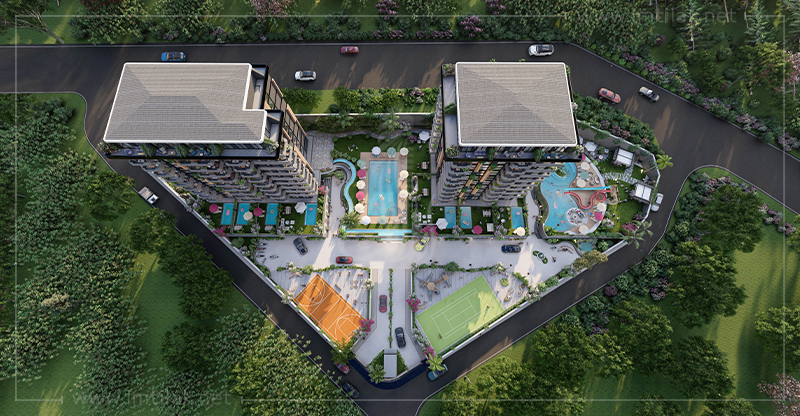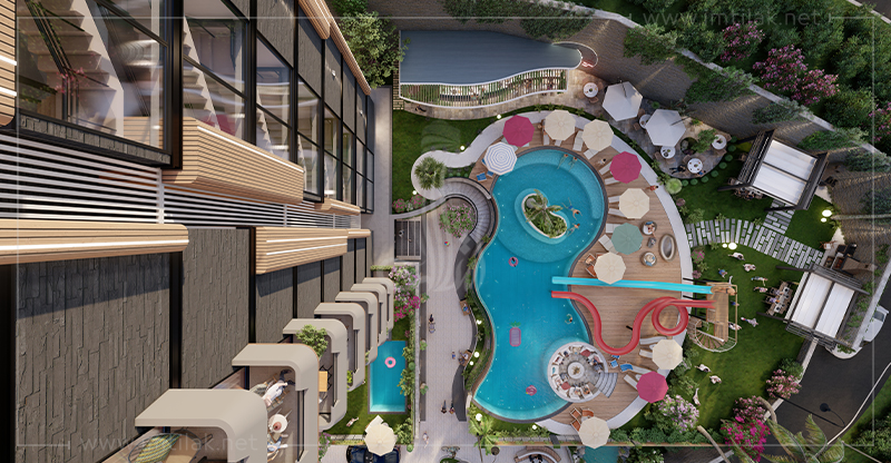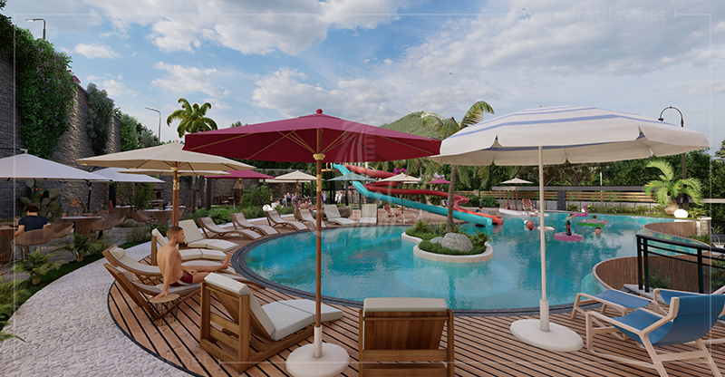 - Diverses installations modernes, telles que : piscines pour enfants et adultes, jacuzzis, espaces de loisirs, BBQ, terrains de sport, café, commerces…