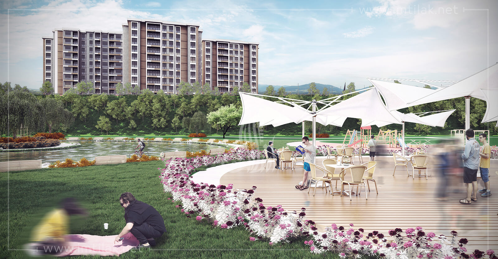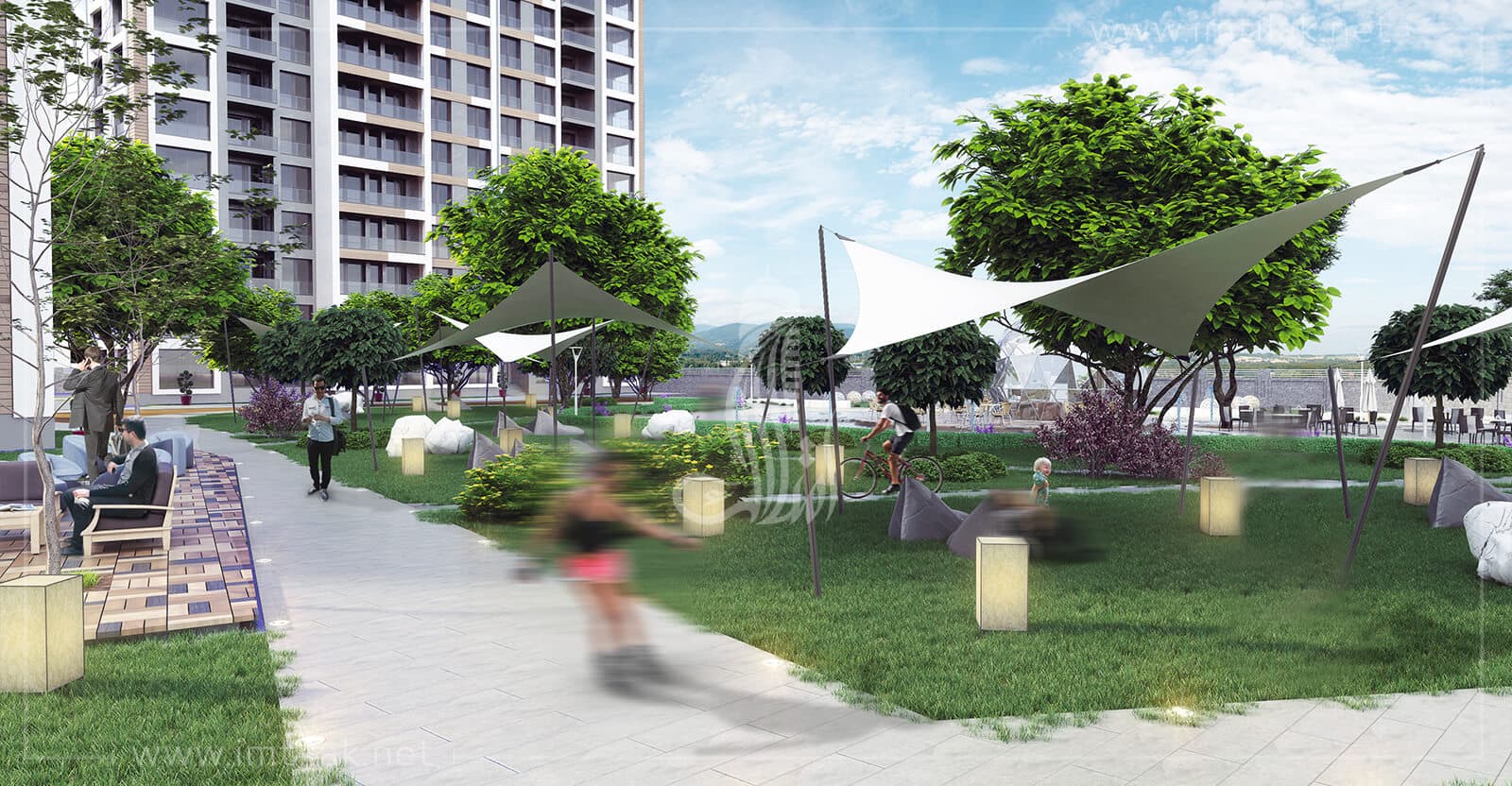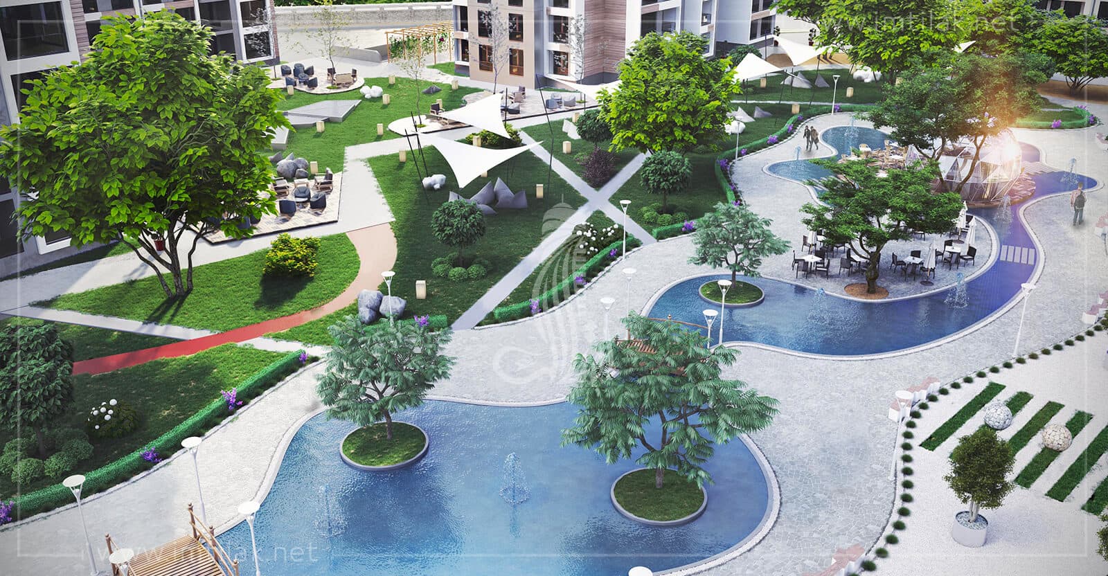 - Equipée des espaces verts spacieux décorés d'arbres verts, des bassins décoratifs, des terrains de jeux, des lieux de pratiquer les loisirs, des sentiers pédestres… avec une conception architectural élégante.