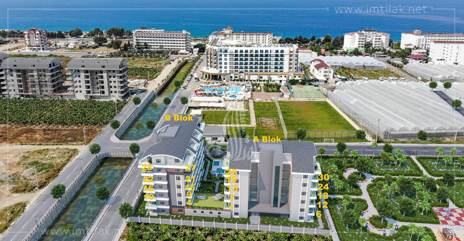Située à Karcagic à Antalya à Alanya, l'une des plus belles villes en Turquie sur la côte méditerranéenne, considérée comme la destination préférée par les touristes et vacanciers.