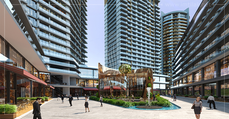- Проект отличается самобытным архитектурным решением по красоте и великолепию, что отражается в ярких фасадах его высотных башен, окруженных зелеными насаждениями.