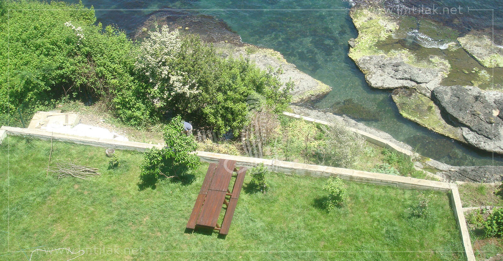 Площадь сада составляет 1200 квадратных метров, половина на берегу моря и половина на обочине дороги.