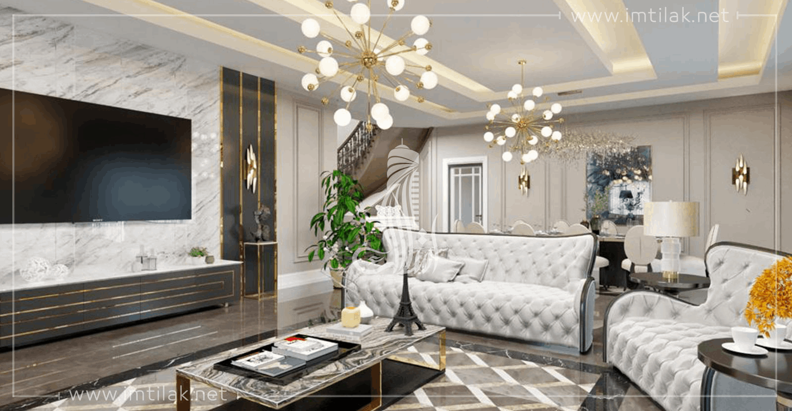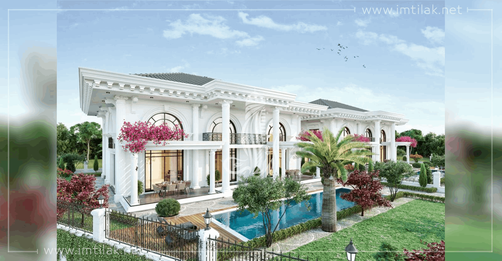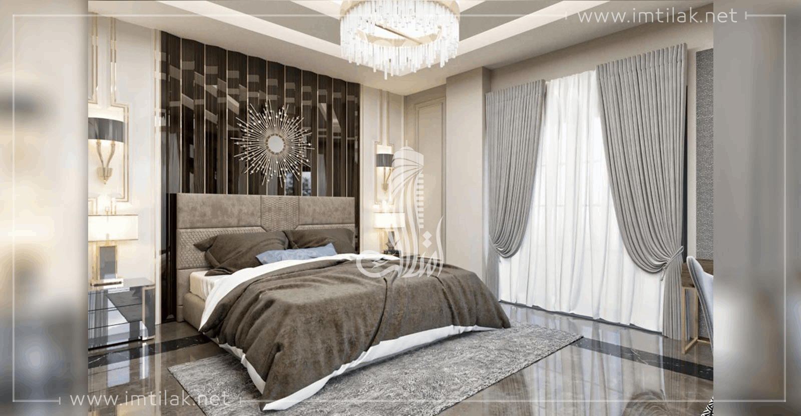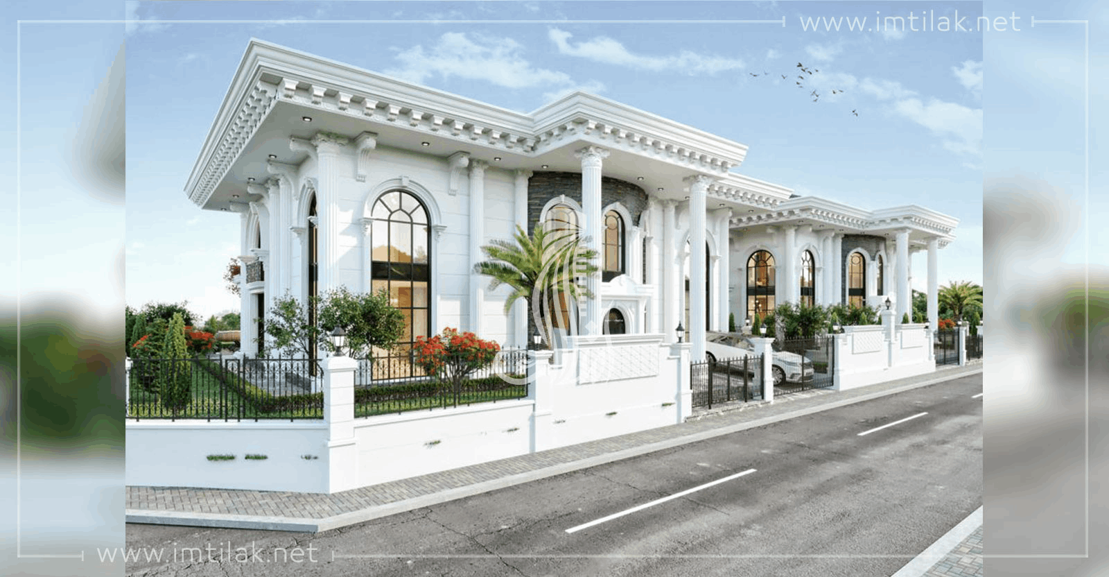 - كل فيلا مؤلفة من 8 غرف، وصالتين، ومطبخين، و 8 حمامات، وغرفة للخدم.