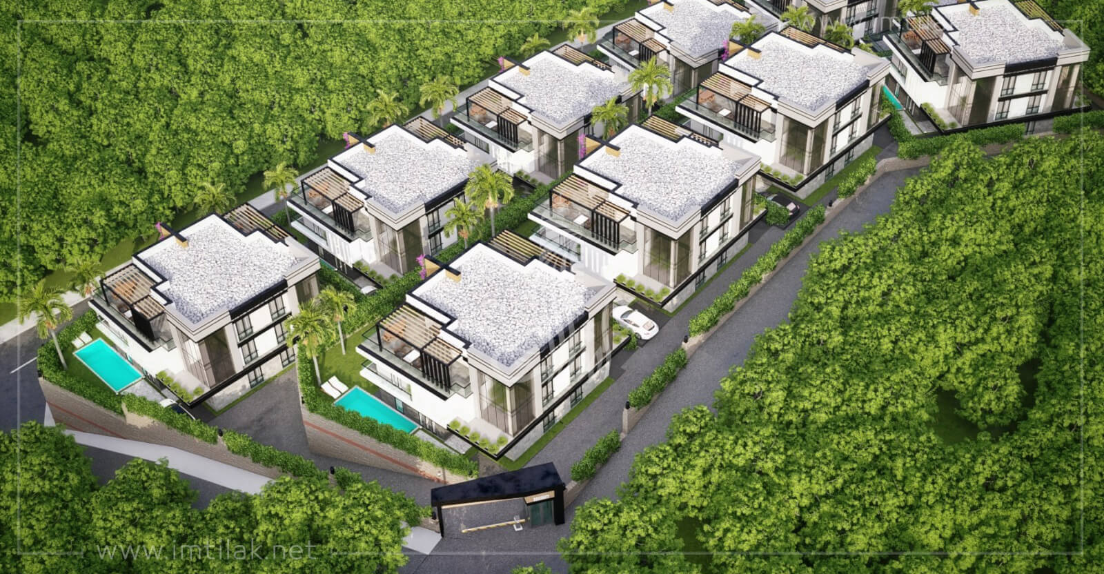 - Проект состоит из 19 вилл, все триплексы (3 этажа), одна из которых независимая, а остальные виллы твин (двойные) виллы.