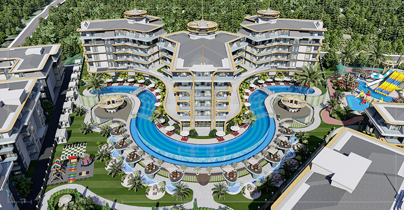 - Proje, büyüleyici yeşil doğanın kucağında, Alanya'nın güzel plajlarının eşiğinde, modern ve lüks bir yaşam arzulayan ailelere uygun konut fırsatları sunmaktadır.