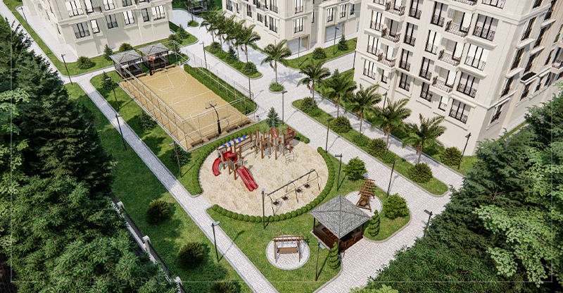 - Proje, zarif binalarında ortaya çıkan güzellik, dayanıklılık ve kalite standartlarını bir araya getiren mimari bir plana sahiptir, binaların özenle tasarlanmış cepheleri ve özel planlara sahip bahçeleri bulunmaktadır.
