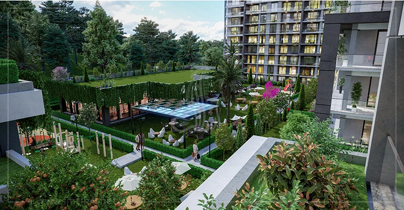 - Proje, zarif binaları, özel tasarımlı bahçeleri ve çok sayıda tesisi ile güzellik ve kalite standartlarını birleştiren bir mimari plana sahiptir.