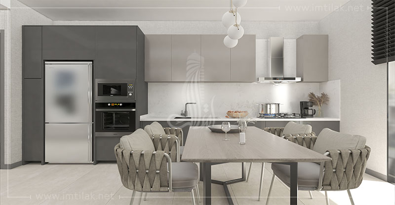 - Proje daireleri, ocak, fırın, davlumbaz ve bulaşık makinesi ile donatılmış mutfaklarla teslim edilmektedir.