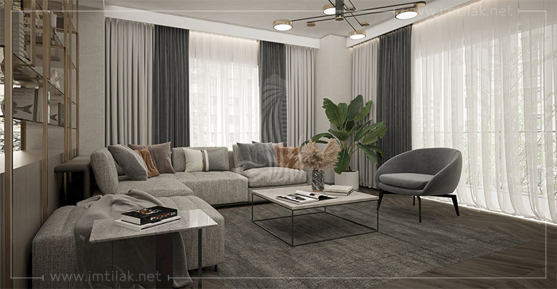 - Proje, 90 ila 130 metrekare arasında değişen net alanlara sahip, Amerikan mutfaklı iki odalı lüks dairelerde benzersiz bir konut fırsatı sunmaktadır, esnek planlar ve yüksek kaliteli bitişlerle.