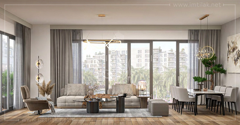- Farklı daire seçenekleri, :oda ve salon ile beş oda ve salon arasında değişen tarzlarda, teraslı ve özel havuzlu daire seçenekleri ile sunulmaktadır.