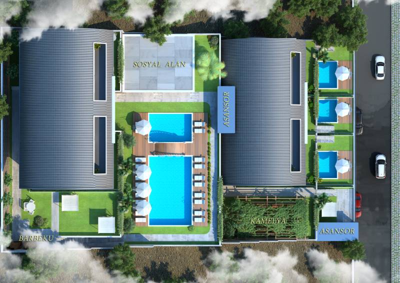 - Proje, güzellik ve kalite standartlarını birleştiren mimari tarzda: 2+1, 3+1 ve 4+1 tiplerinde dubleks daireler sunmakta olup, özel havuzlu daireler de mevcuttur.