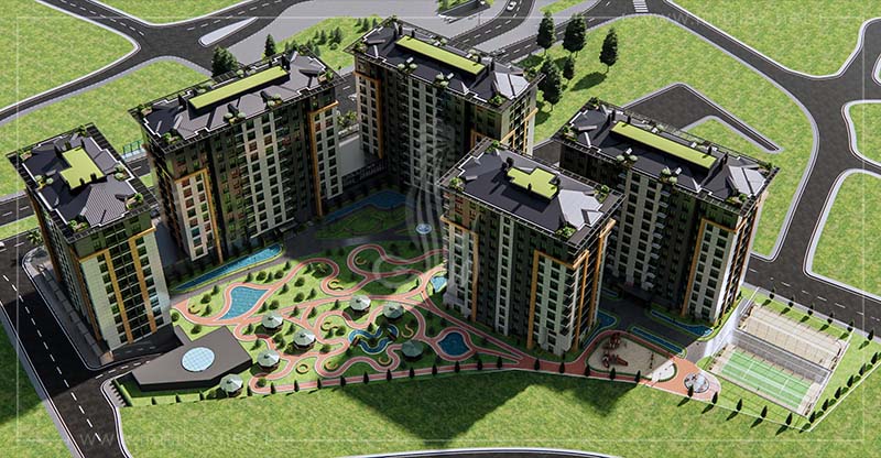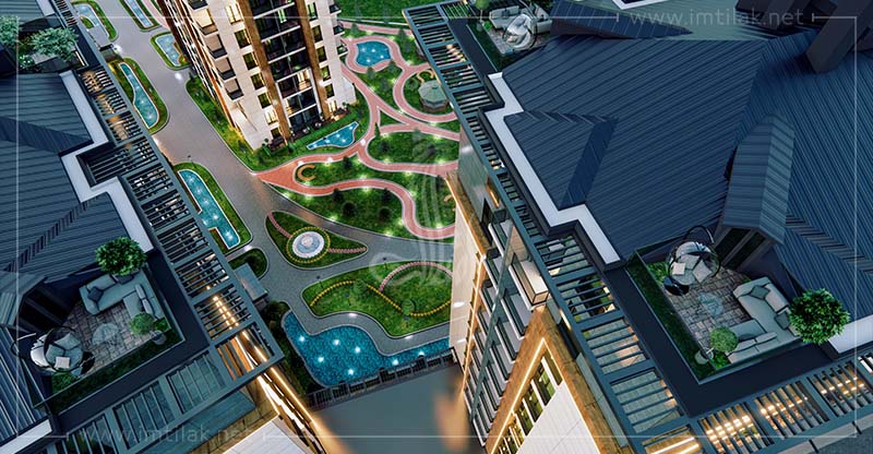 - Proje, beş binanın klasik ve zarif mimari tarzıyla parladığı ve su yüzeyleri, ağaçlar ve çiçeklerle süslenmiş yemyeşil bahçelerle çevrili, özgünlük ve yeniliği bir araya getiren dış tasarımıyla dikkat çekmektedir.